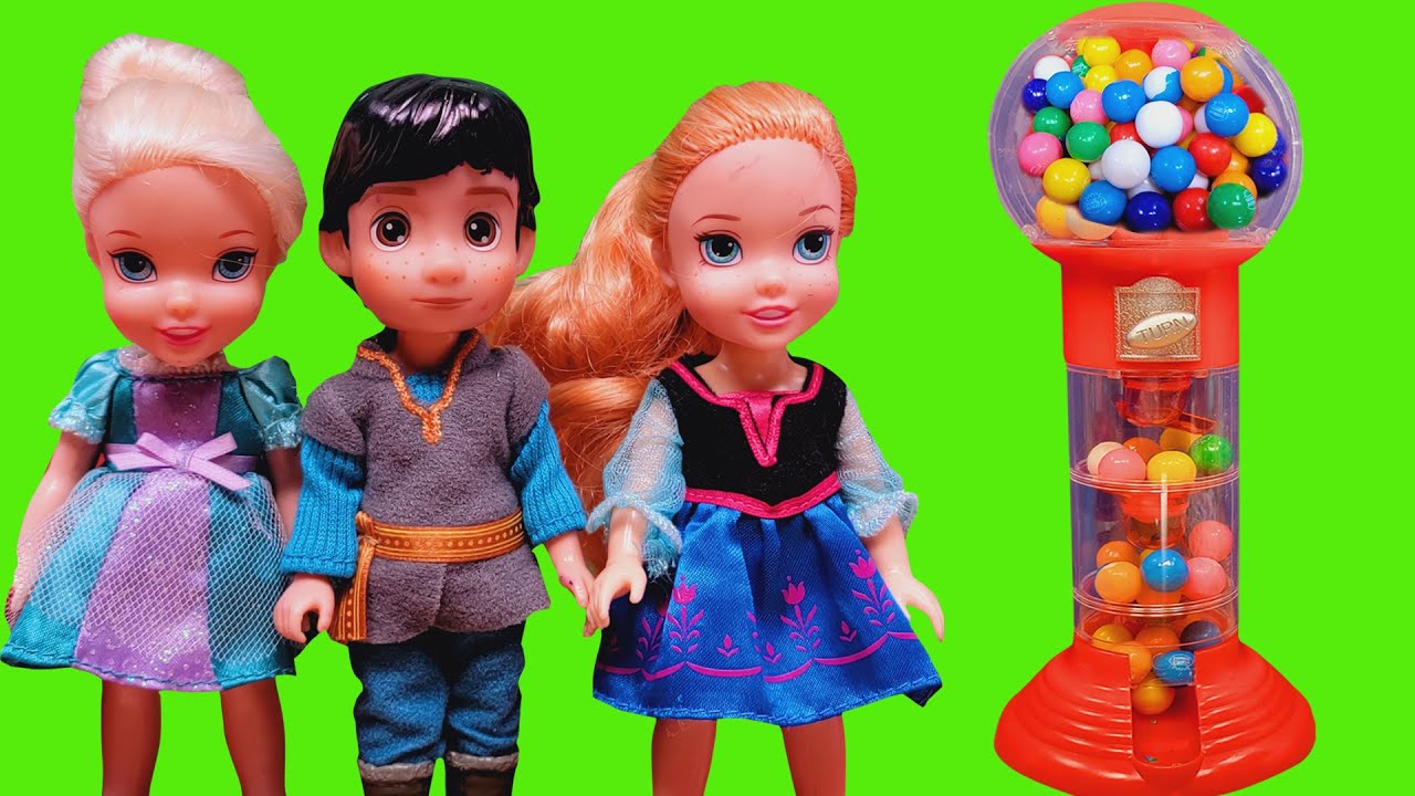 In this toys dolls parody video, little Anna and Elsa visit Benjamin's house! He has two cool giant gumball machines waiting for the girls in his room. One is shaped like a car and the other one is a claw machine. Watch how they fill them up with colorful gumballs and play. Watch the video and enjoy!