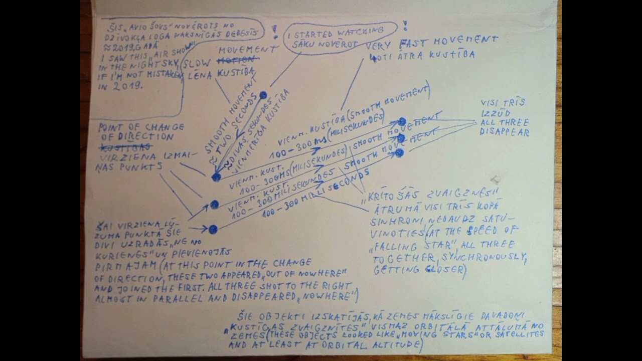 Here is a schematic representation of what I observed in the night sky a few years ago, by the way, looking out the window. I turn off hallucinations. They have never been dealt with. Does anyone have any explanation for what this might be like if we exclude newcomers from another dimension or the expression of extraterrestrial reason? I haven't received any explanation yet. If cosmologists, meteorologists or other specialists do not explain anything about such maneuvers, then, albeit involuntarily, suspicions fall on aliens. The former co-worker said he had seen something similar. Cousin agreed with me that these could be modern satellite technology, but a change of direction at such a sharp angle and out of nowhere and sudden extinction? I sent this scheme with a description to the Latvian Astronomical Society. No answers yet. Ha, ha, maybe they already have a certain attitude towards such observers. Then I'm sorry because I didn't fantasize