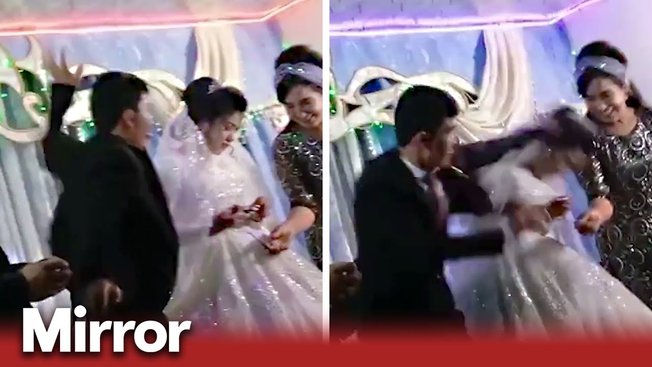 Horrific footage has emerged of a groom violently hitting his new wife at their wedding.