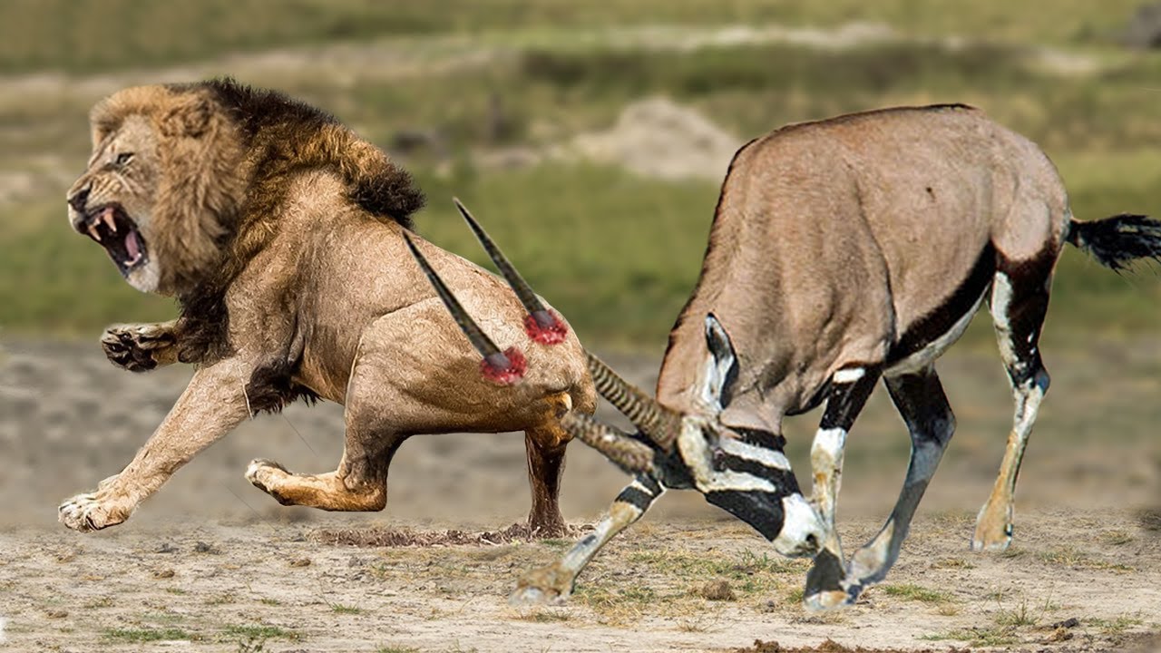 Gemsbok Knock Down Herd Lion With Their Horns To Rescue His Teammate - Lion vs Hippo, Gemsbok, Kudu.
