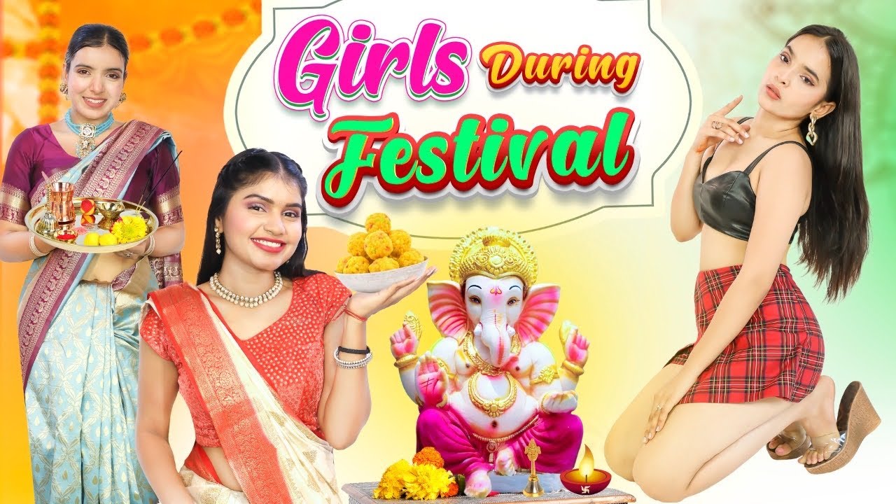 On this special occasion of "Ganesh Chaturthi", We are here with "Girls During indian festivals special video, In this video, We are going to show you how Desi girls and Modern girls celebrated their festival..This video is covered with all kinds of comedy which includes Prank with sister, mom yelling, festival prepareation, how desi people celebrate, how modern people celebrate, desi girls, rich girls, Watching instagram reels, fight with siblings, sister vs sister, fart in blanket, mom angry, festival time, maths subject weak, taking ganesh ji at home, ganpati bappa maurya, traditional dress,jhumkas, funny dance,how Indian girls celebrated their Festival, mom nagin dance, home decoration, doctor boyfriend, buying pads saree styling, using iphone, live on instagram, making vlog, mandir decoration, lie, slip on floor, tabla, ganpati pooja, taking prashad, bhajan kirtan, mohella get together, neighbors, modak, rose flowers, girls dance, love letter, boyfriend, doctor writing, chemist help, glamour, sister cheating, bubble bath planning, testing viral hacks, bet with sister, makeup products, making roti, aata on face, applying lipstick, hacks fail, Colgate adding in fanta cold drink, wear western dresses,dance on viral reel music, skirts, heels, eating pizza with BFF, Window escape, funny, celebrate this festival and enjoying..