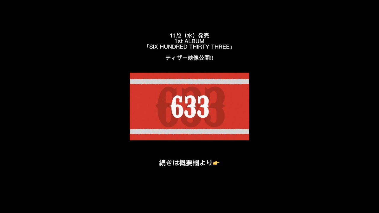 11/2(水)発売 1st ALBUM「SIX HUNDRED THIRTY THREE」から、先行配信中の「Drink Up」「Million」を含む、全曲ティザー映像を公開!
