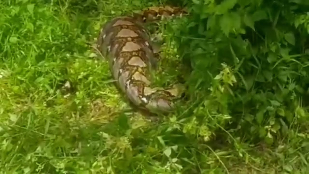 After its feast, the bloated creature was discovered hiding among the grass by a terrified farmer who called the local rescue team for help.