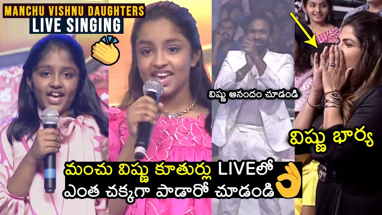 మంచు విష్ణు కూతుళ్లు👌| Manchu Vishnu Daughters SUPERB LIVE Singing At Ginna Pre Release | Mohan Babu