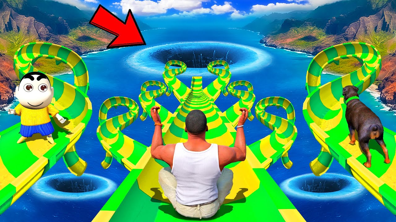 SHINCHAN AND FRANKLIN TRIED THE AMAZING MELA WATER SLIDE CHALLENGE GTA 5