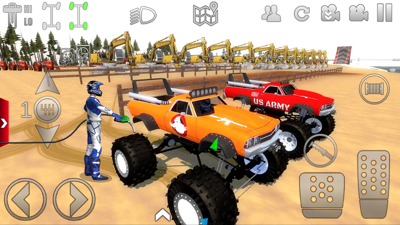 You build your rig the way you want it. You have total control over chassis setup - stiffness, damping, travel, etc... and can even swap to a different type of suspension if you want (want a modern truck with an I-Beam setup in front, and a solid axle in back? No problem.) For vehicle control, you're given Tilt, Arrow, or on-screen Steering wheel controls. You choose!
